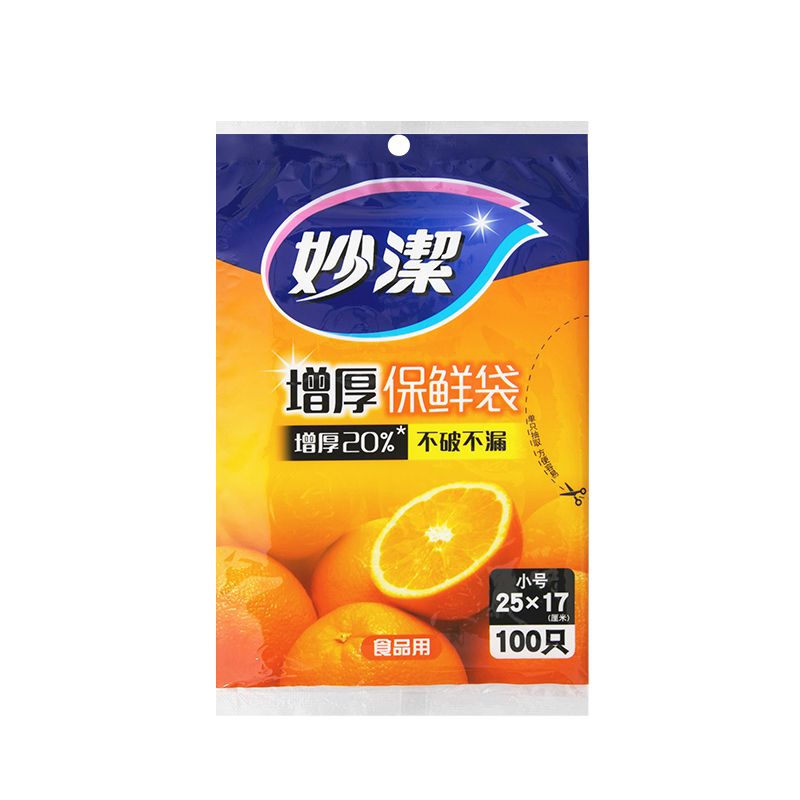 妙潔 一次性保鮮袋 抽取式 食品袋 小號100只裝25cm*17cm