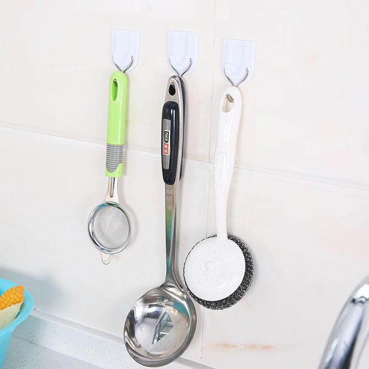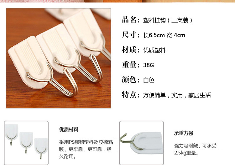 萬豐3個裝簡約不留痕強力粘勾掛鉤鐵鉤 家居實用門后掛鉤廚房粘鉤