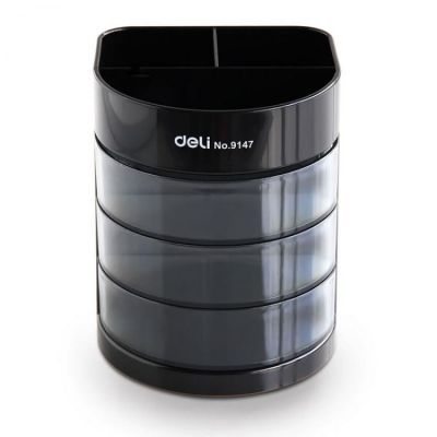 得力9147多功能筆筒商務(wù)辦公文具塑料筆座桌面收納小件帶抽屜筆筒