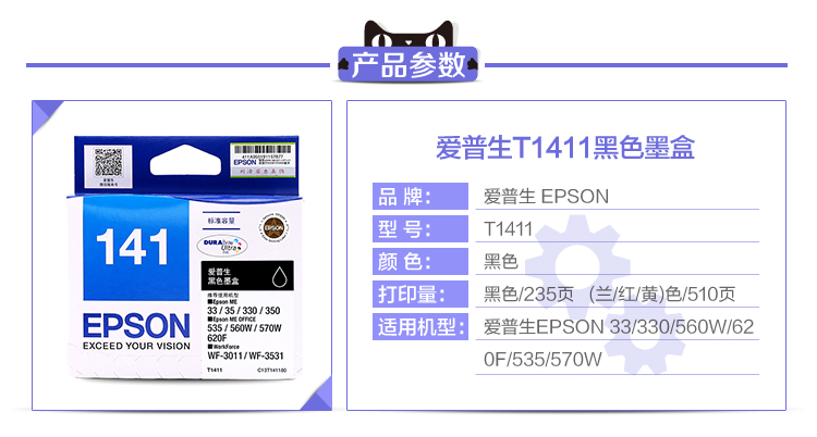 原裝愛普生141墨盒 t1411墨盒 ME330 ME350 560W 620F ME33