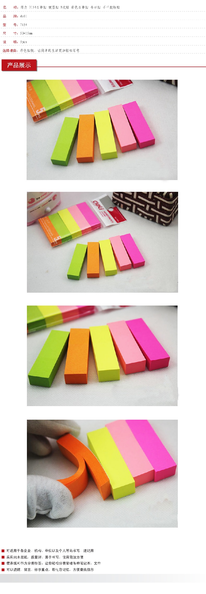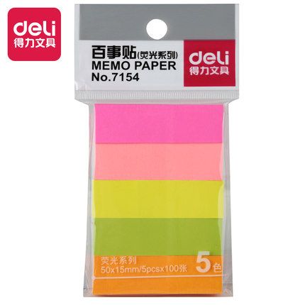50×15mm 得力7154熒光靚麗百事貼 50×15mm記事貼N次貼便利貼 100頁(yè) 便條紙