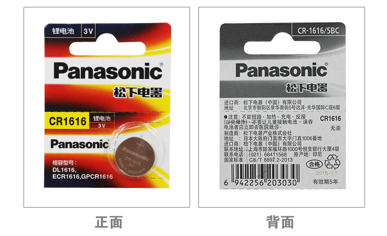 松下CR1616紐扣電池 別克本田思域鋒范雅閣汽車遙控電子3V 一粒價
