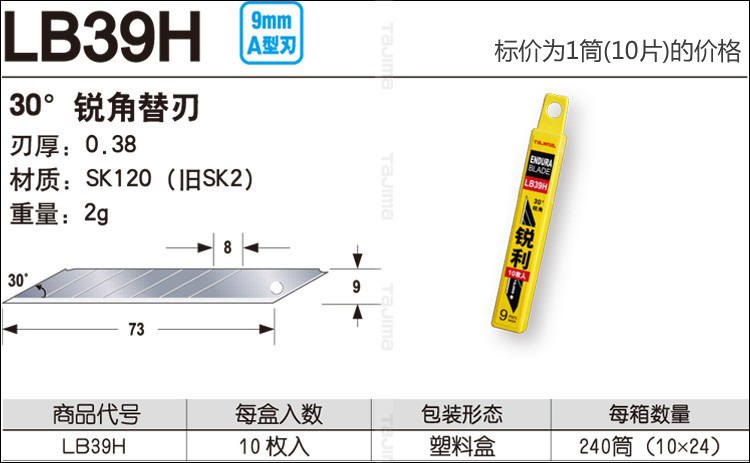 日本田島9mm刀片銳利型替刃配30度小號(hào)墻紙貼膜美工刀片LB39H