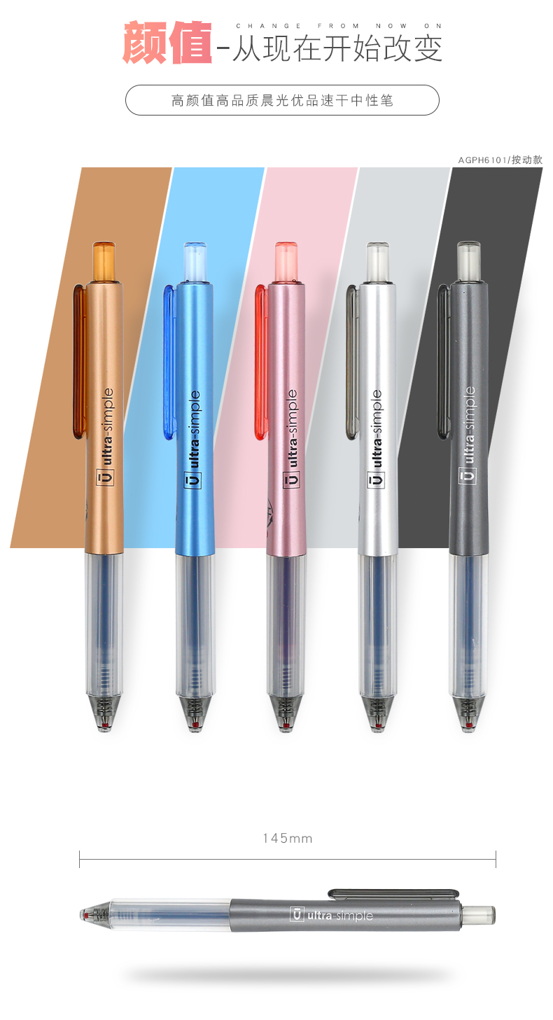 晨光優品0.5MM速干中性按動水筆簽字筆AGPH6101考試備考舒適手指
