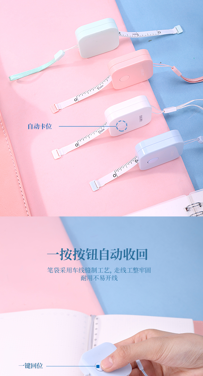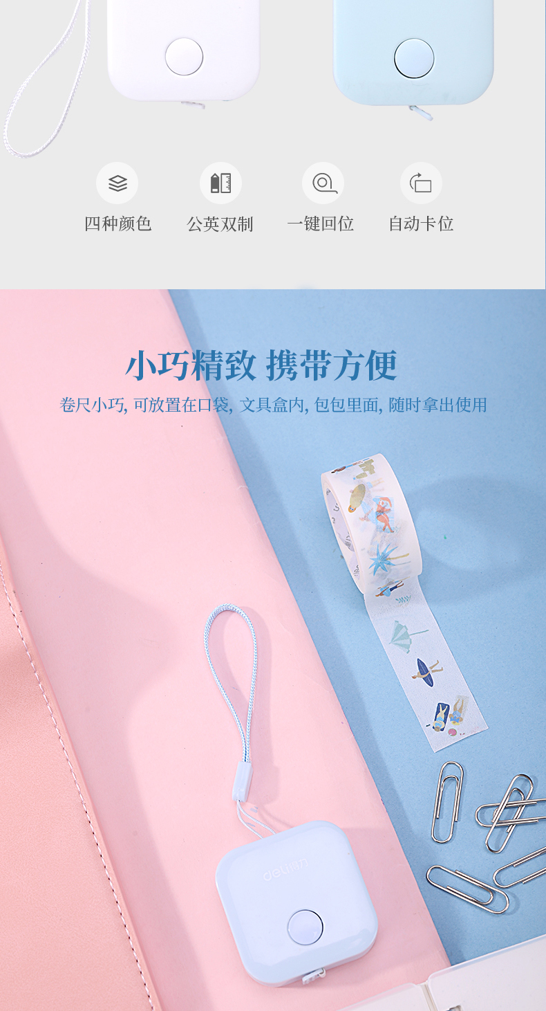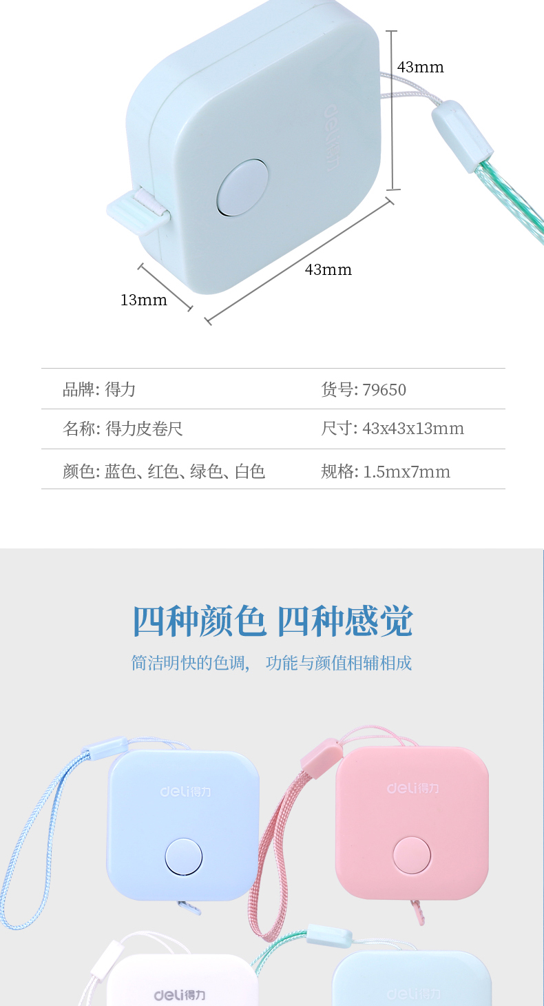 得力79650迷你小皮尺 1.5米量衣尺軟尺 拉尺伸縮尺鑰匙扣卷尺