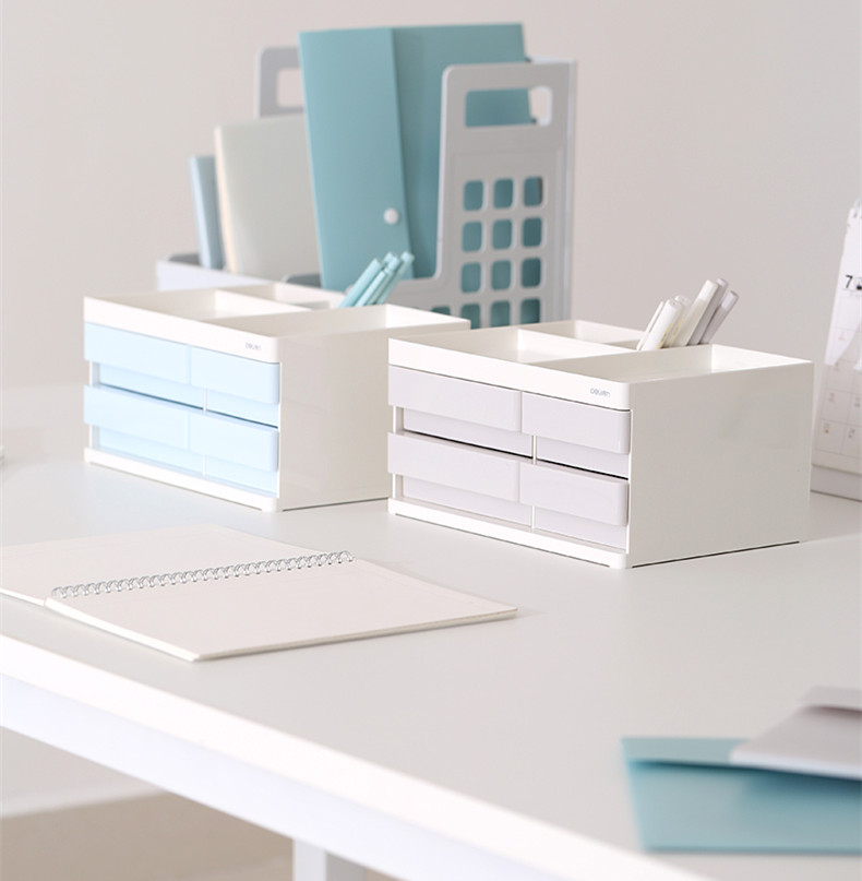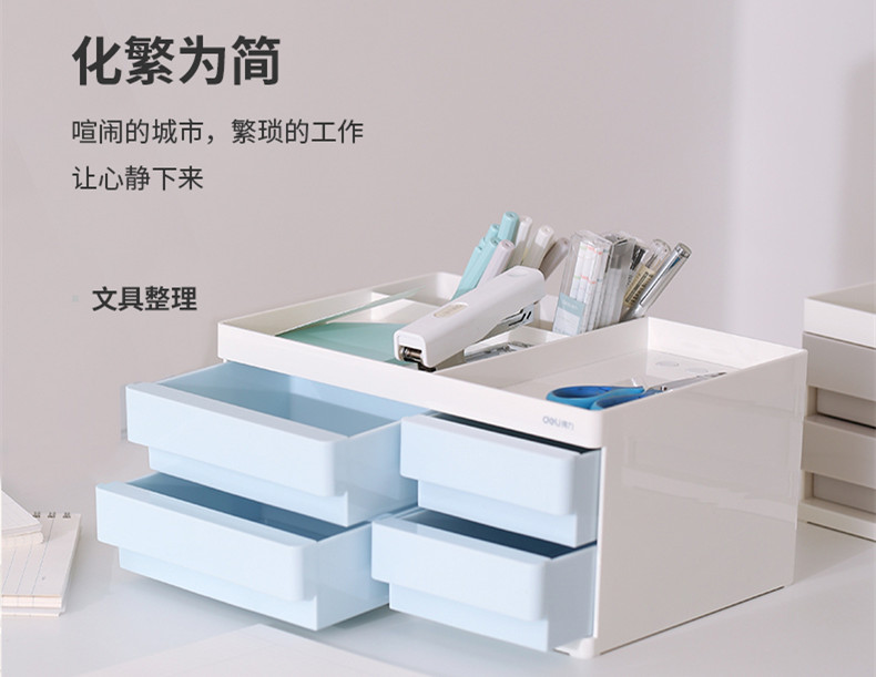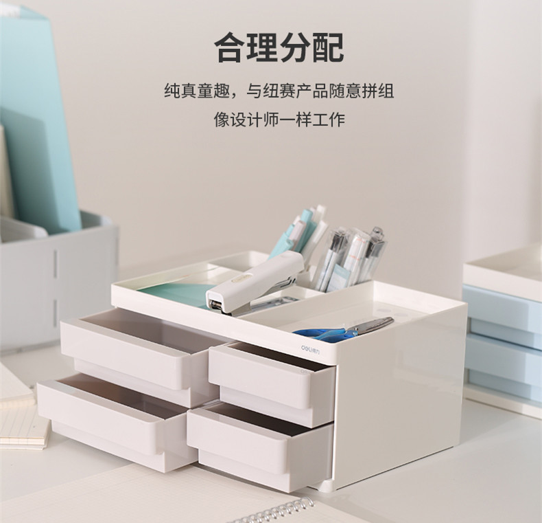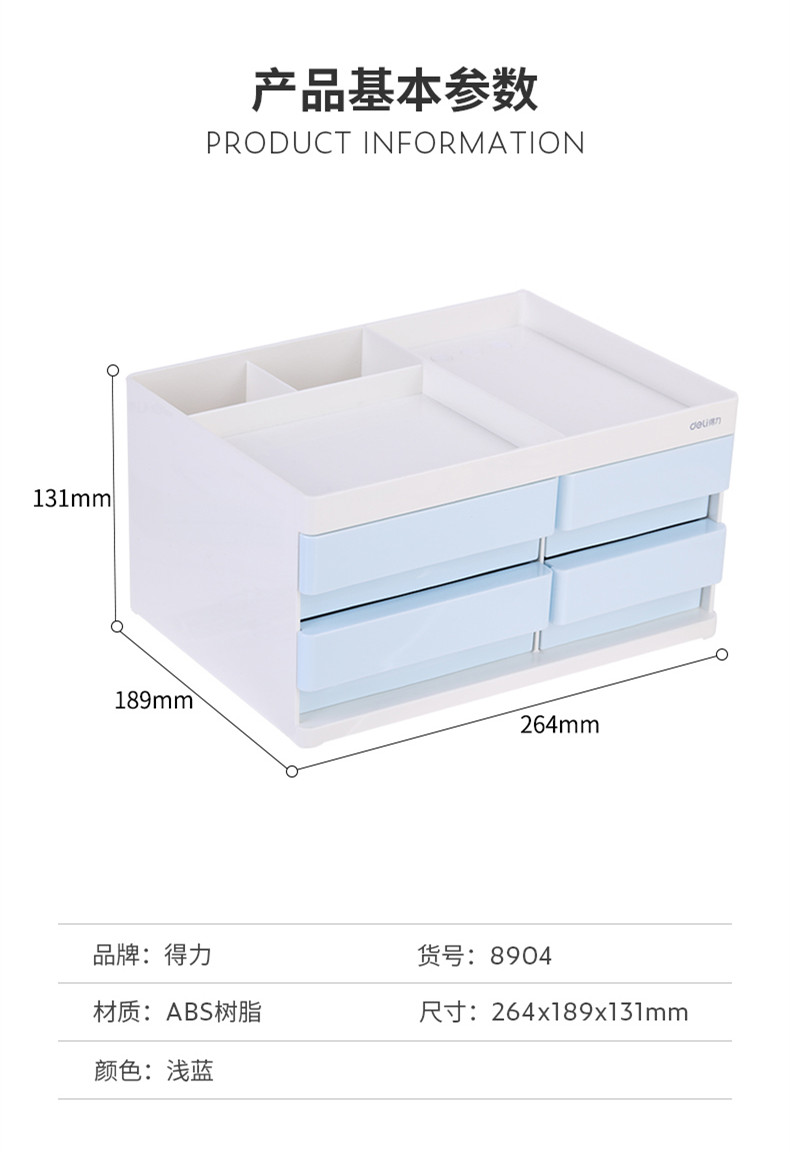 得力8904收納盒ABS樹脂強度高辦公收納學(xué)生文具整理帶筆筒盒子