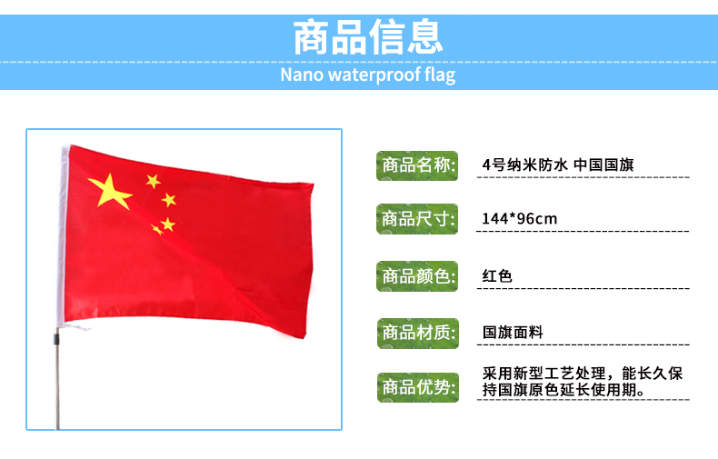 4號納米防水中國國旗 五星紅旗旗子 144*96厘米裝飾大號標準紅旗