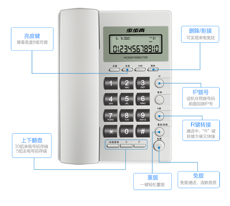 步步高(BBK) 步步高6082有繩電話機(jī)座機(jī)固定電話 有線座式家用辦公電話 雅白色