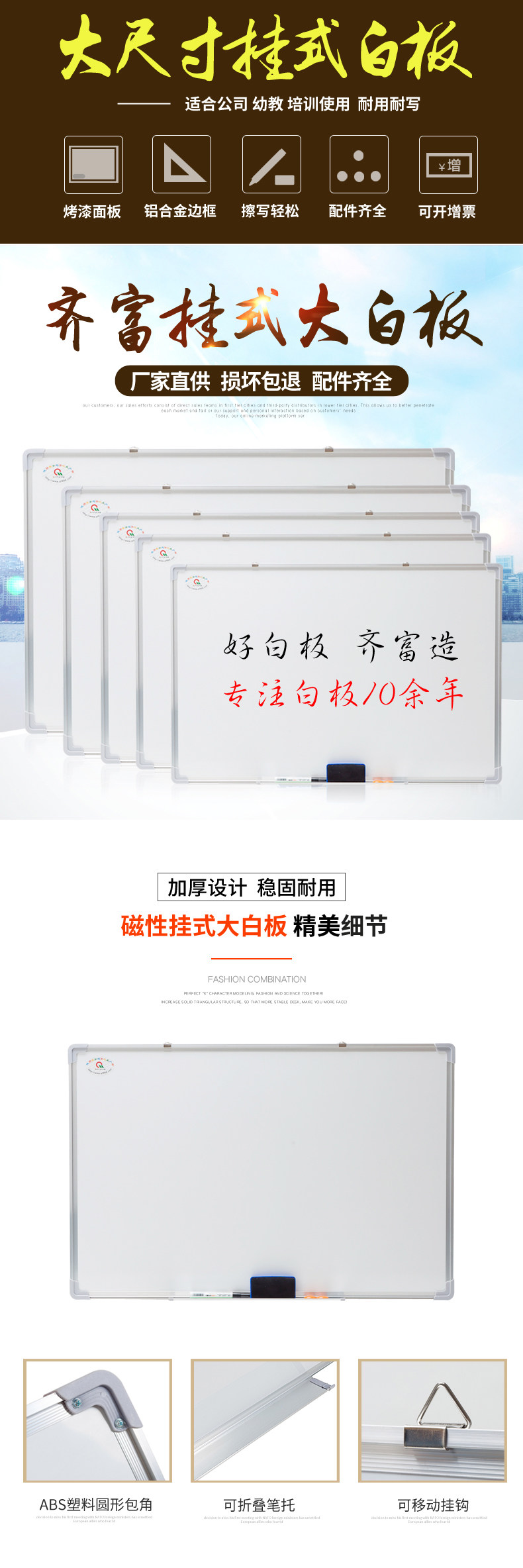 60*90cm 齊富單面磁性掛式白板辦公書寫壁掛白板小黑板墻家用兒童涂鴉小白板黑板掛式教學白班寫字板會議留言記事看板