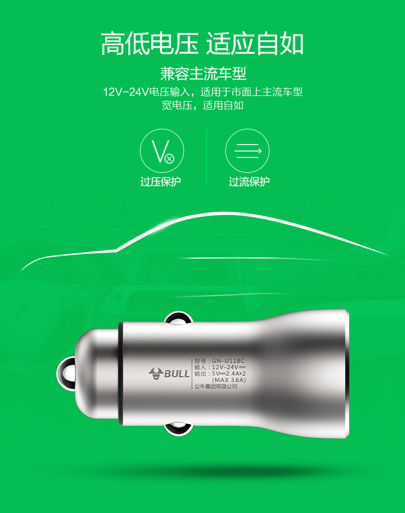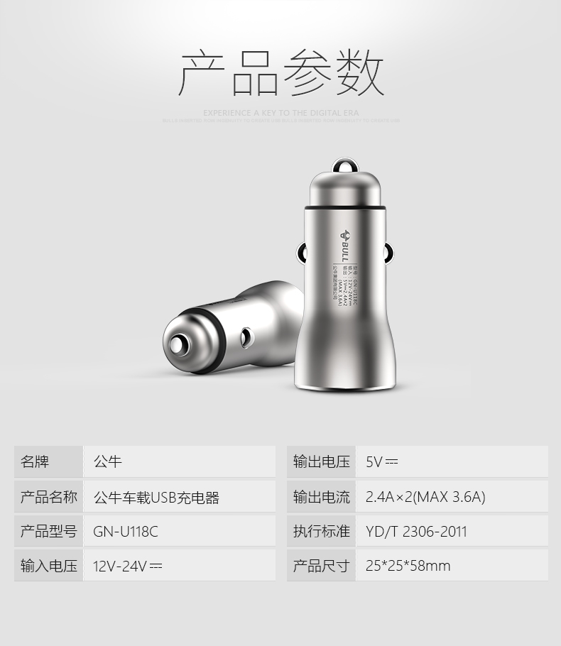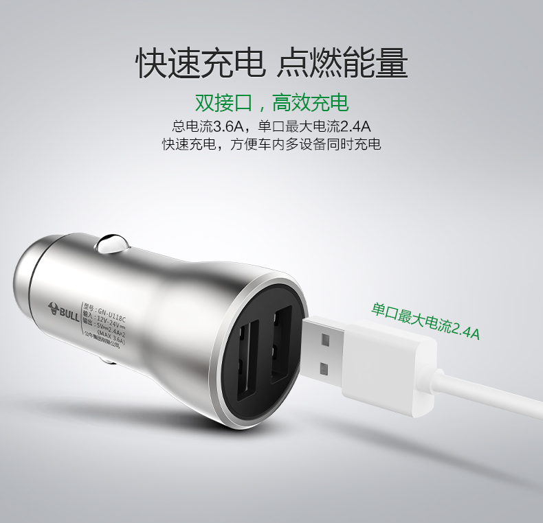 公牛GN-U118C(新國標)彩盒金屬車載充電器 車載充電器