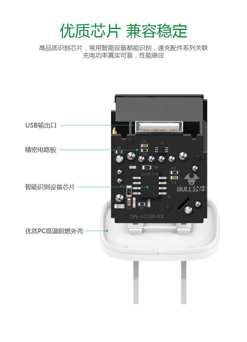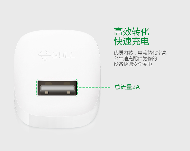 公牛BULL 手機充電器2A三星S6小米5華為安卓平板通用USB插頭 U1100 電源