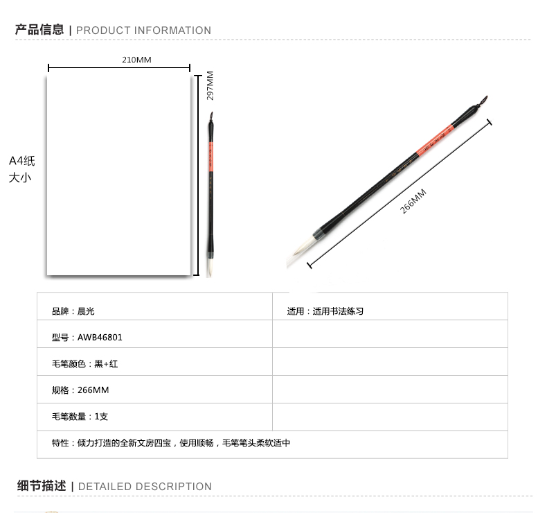 晨光文具學生毛筆 中小學生金品兼毫書法毛筆 小中大楷書法練習練字用筆水寫筆文房四寶 小楷 兼毫