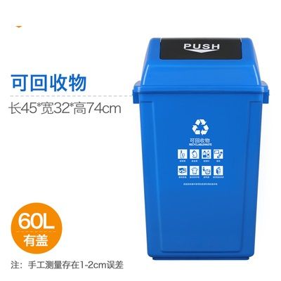 60升 上海干濕分離垃圾分類垃圾桶家用帶蓋大號可回收物無蓋廚房果皮箱 分類垃圾桶