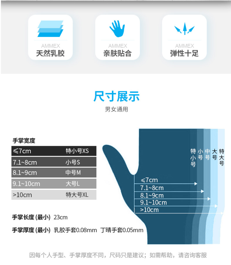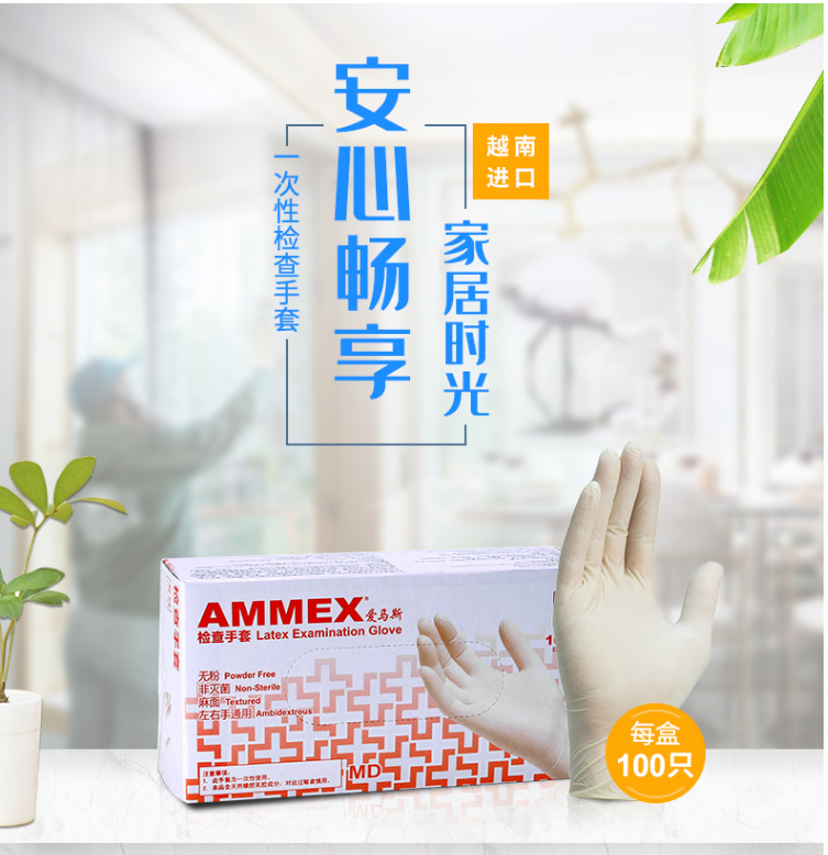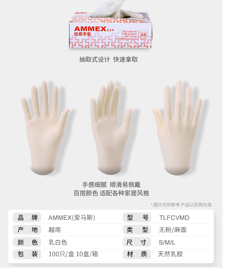 愛(ài)馬斯(AMMEX) 一次性乳膠手套 小號(hào) S L M 一次性手套
