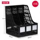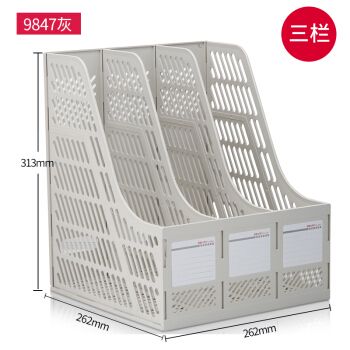 得力 文件框三聯 塑料文件架 資料架文件欄 文件筐 收納架 三聯黑色 灰色9847