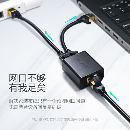 綠聯(lián)(UGREEN)網(wǎng)線分線器一分二同時上網(wǎng)轉(zhuǎn)接頭 RJ45網(wǎng)絡(luò)雙網(wǎng)口延長器直通三通頭 IPTV寬帶接口分接器50923