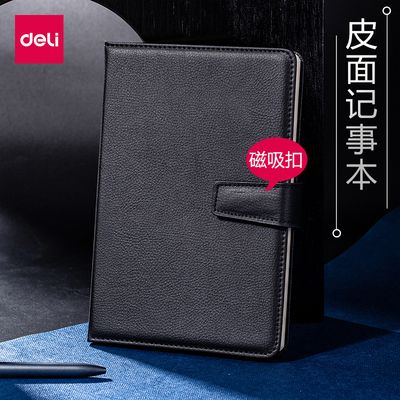 得力3301皮面本筆記本磁吸扣PU面超厚加厚記事本辦公商務(wù)黑色皮面