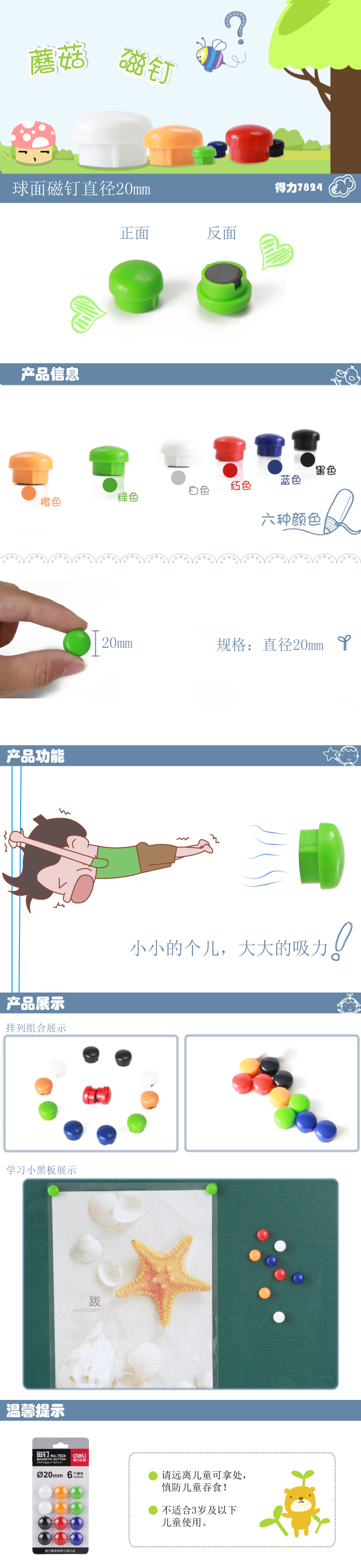 得力(deli) 7824磁釘 白板配件 固定磁扣 小磁鐵 20mm 磁粒