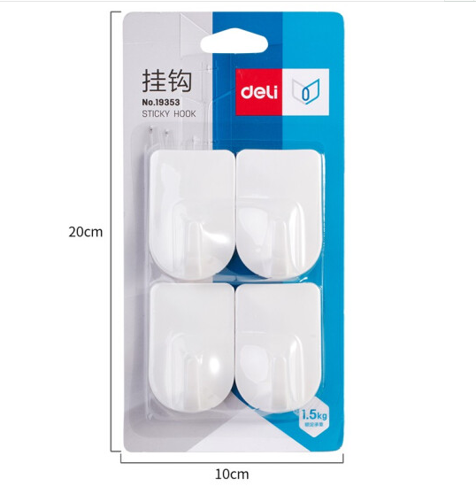 得力(deli)強力粘膠掛鉤 掛衣鉤 廚房浴室墻壁免釘門后掛衣鉤 19353 4只/卡(承重1.5kg)