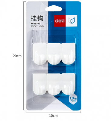 得力(deli)強力粘膠掛鉤 掛衣鉤 廚房浴室墻壁免釘門后掛衣鉤 19352 6只/卡(承重1kg)