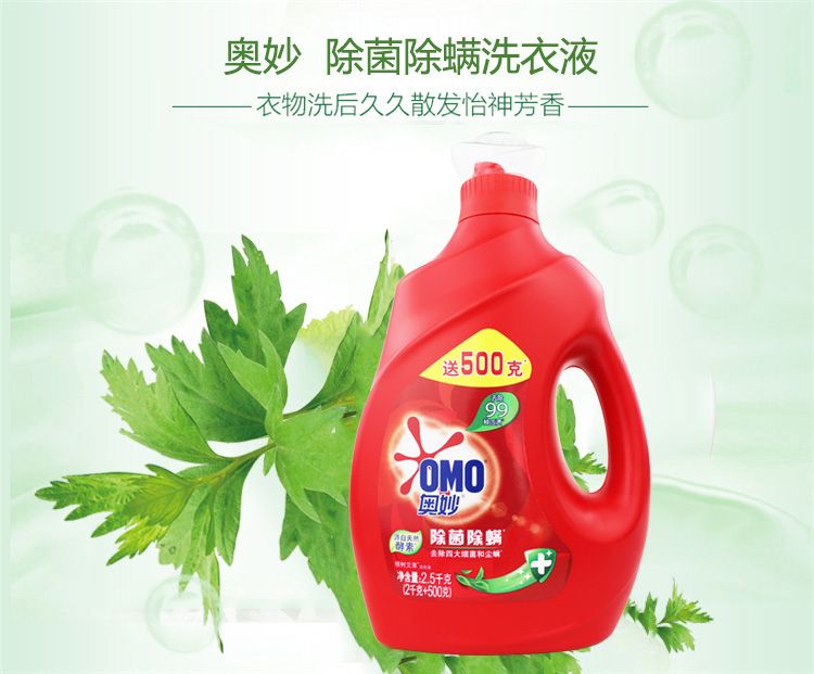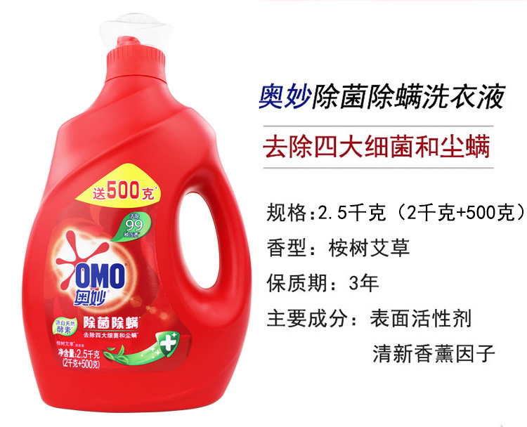 奧妙 4瓶1組 洗衣液5斤家庭裝 除菌除螨洗衣液2kg+500g