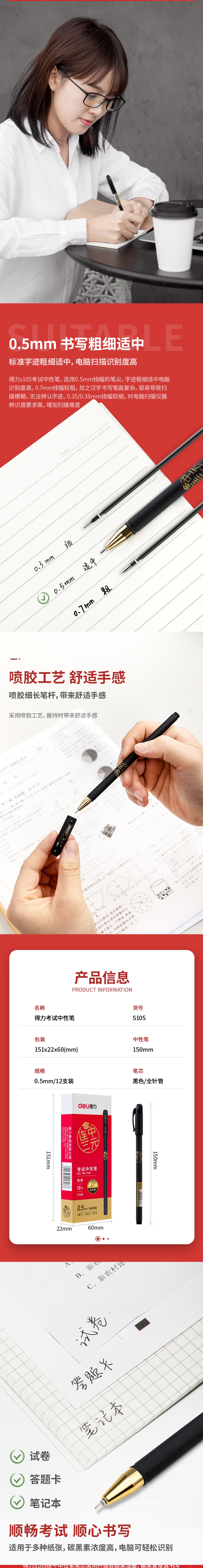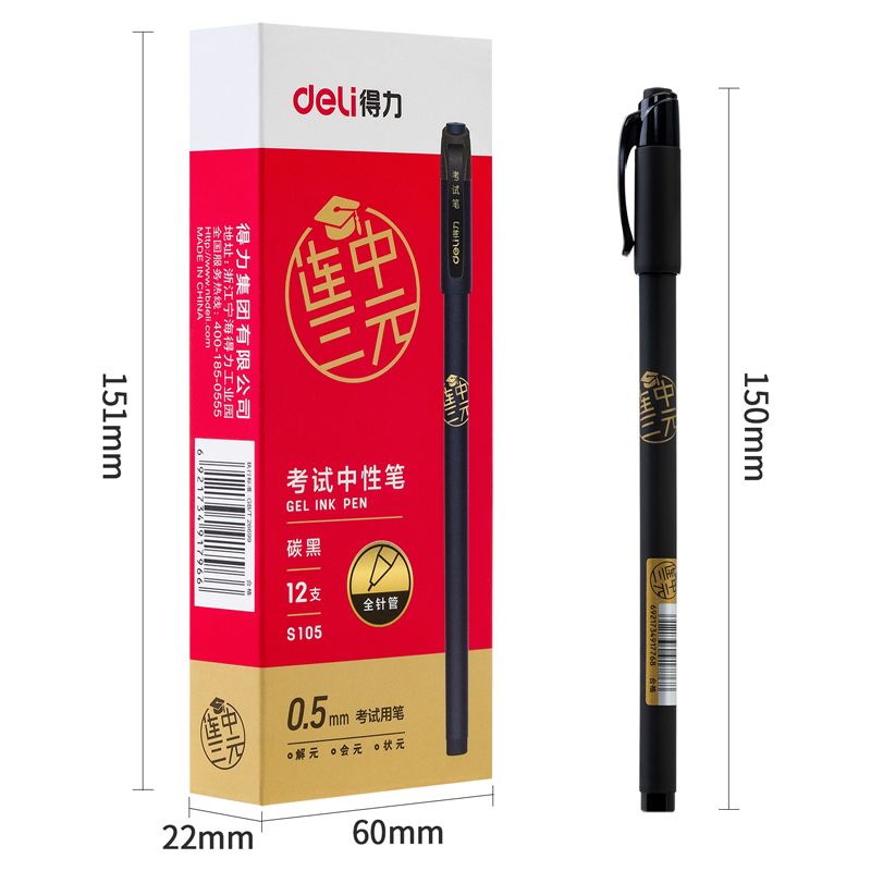 得力S105考試中性筆0.5mm全針管(黑) 水筆 開學