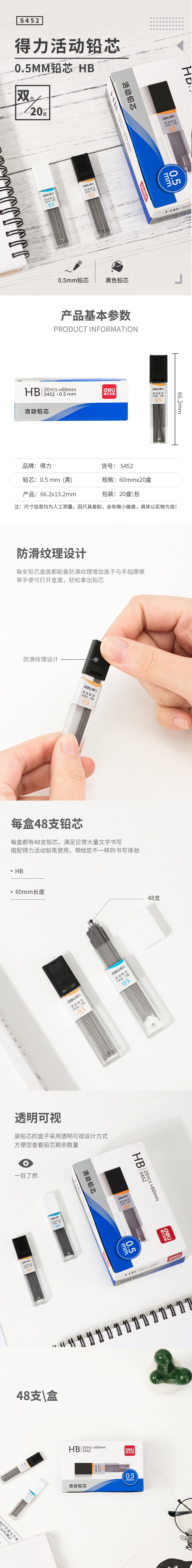 得力S452活動(dòng)鉛芯HB-0.5mm(混)(支) 自動(dòng)鉛筆芯 開學(xué)