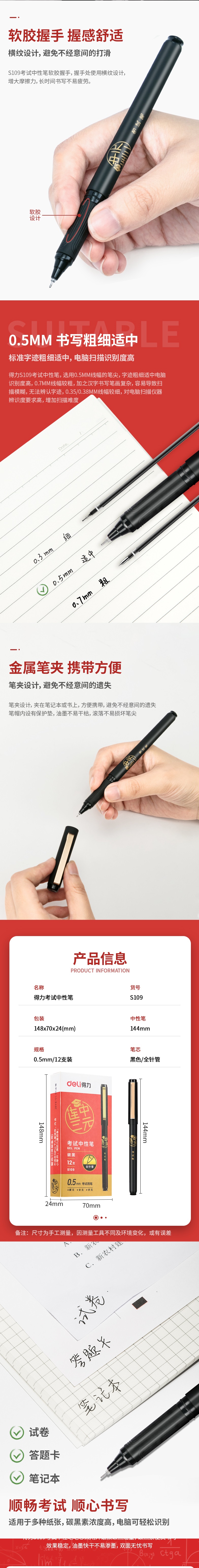 得力S109中性筆0.5mm全針管(黑) 水筆 開學