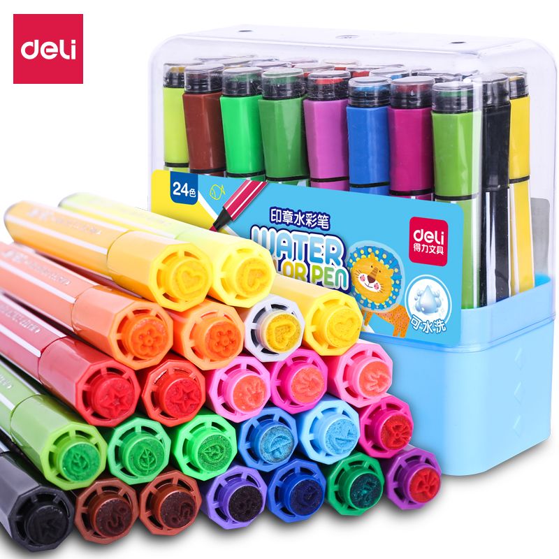 得力70652水彩筆(藍)(12支/盒) 70653 70654 開學 12色 24色 36色