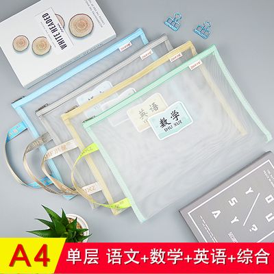 A4 文件袋 作業帶 a4文件袋透明網紗作業袋 試卷袋 資料袋 語文數學英語科目分類收納袋 開學