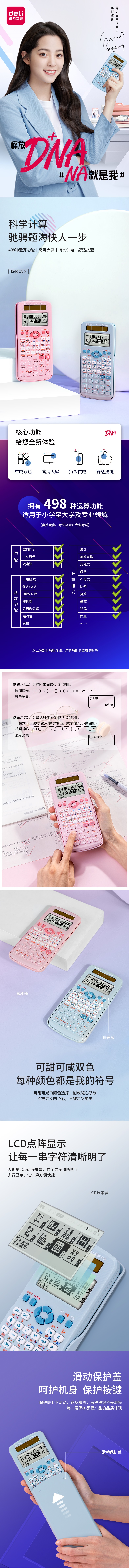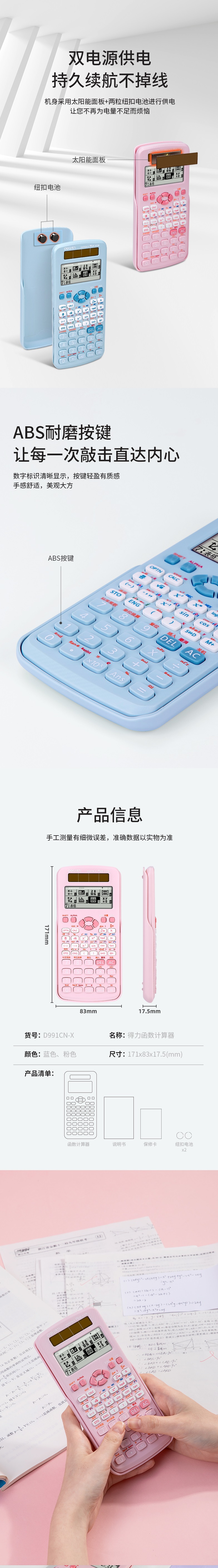 得力D991CN-X函數計算器(藍色)(臺) 科學計算器 學生計算器 開學