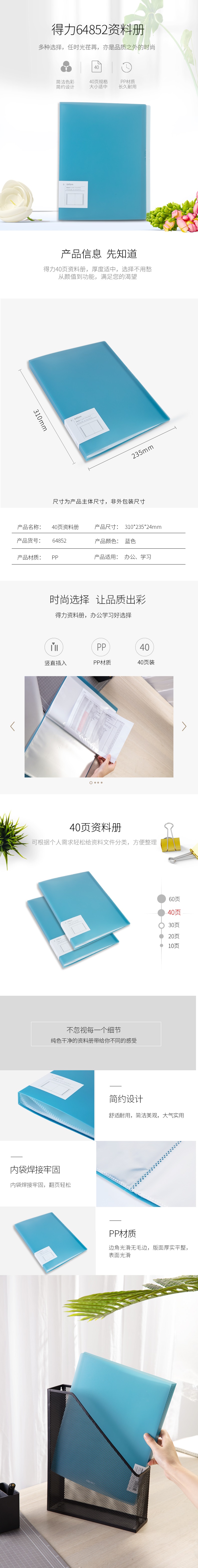 得力64852 40頁 資料冊 A4簡約多頁 30/40/60頁插頁夾