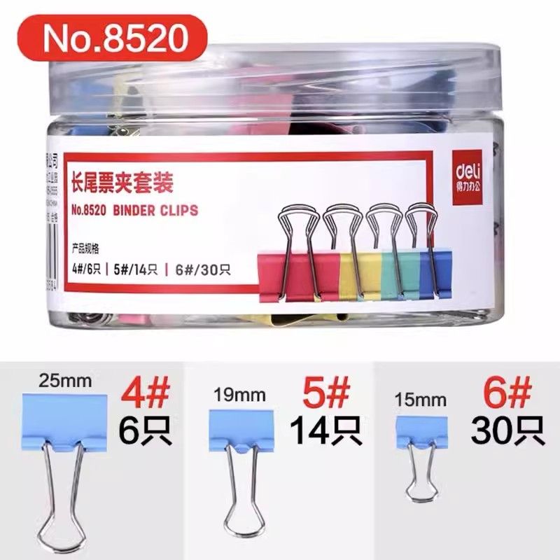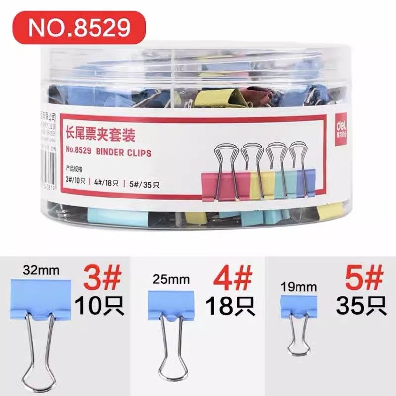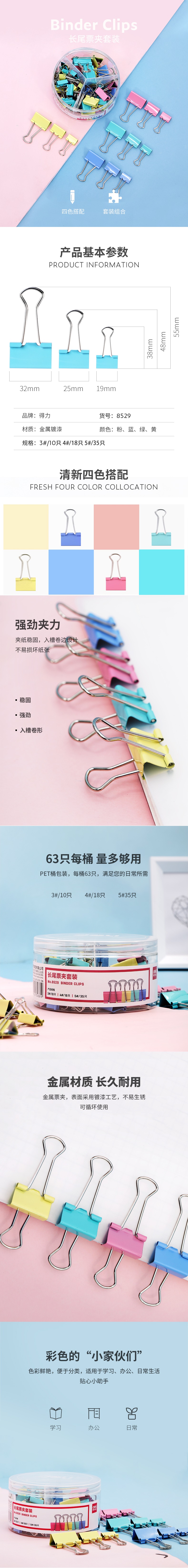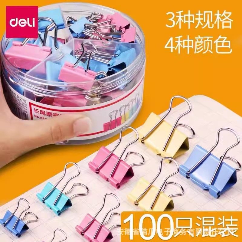得力(deli)63只多規(guī)格彩色長尾夾/燕尾夾/票夾(32mm10只+25mm18只+19mm35只) 辦公用品 8529 8520 8521