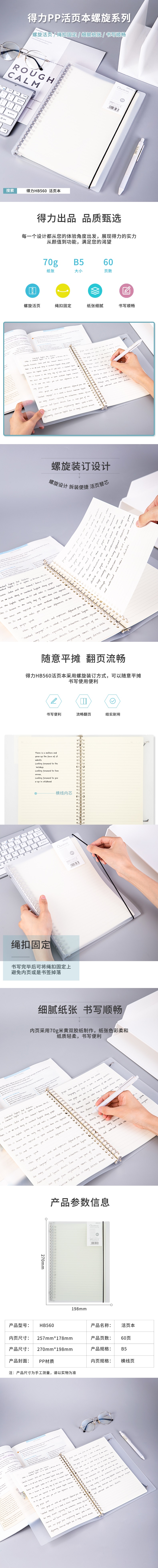 得力(deli)B5/60張活頁筆記本子 可替換芯記事本 考研復習筆記本文具 HB560活頁本