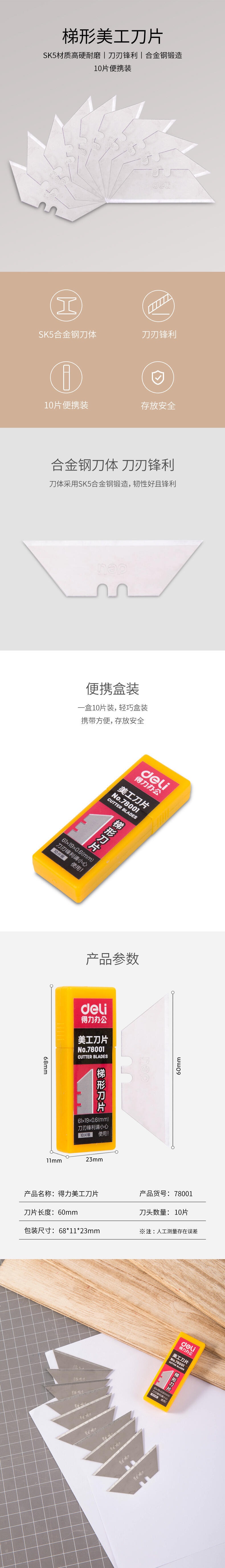 得力(deli)金屬T型合金鋼美工刀片 10片裝 銀色78001
