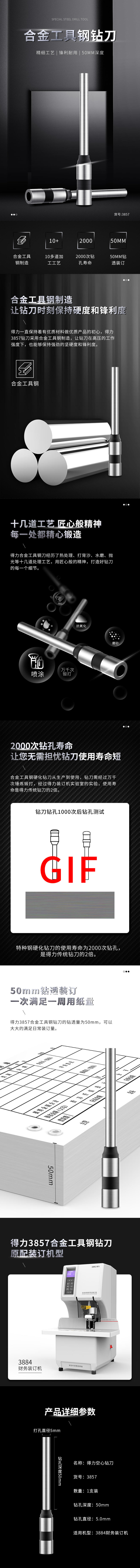 得力3857空心鉆刀訂機刀鉆頭φ5*50mm 適用多機型3884