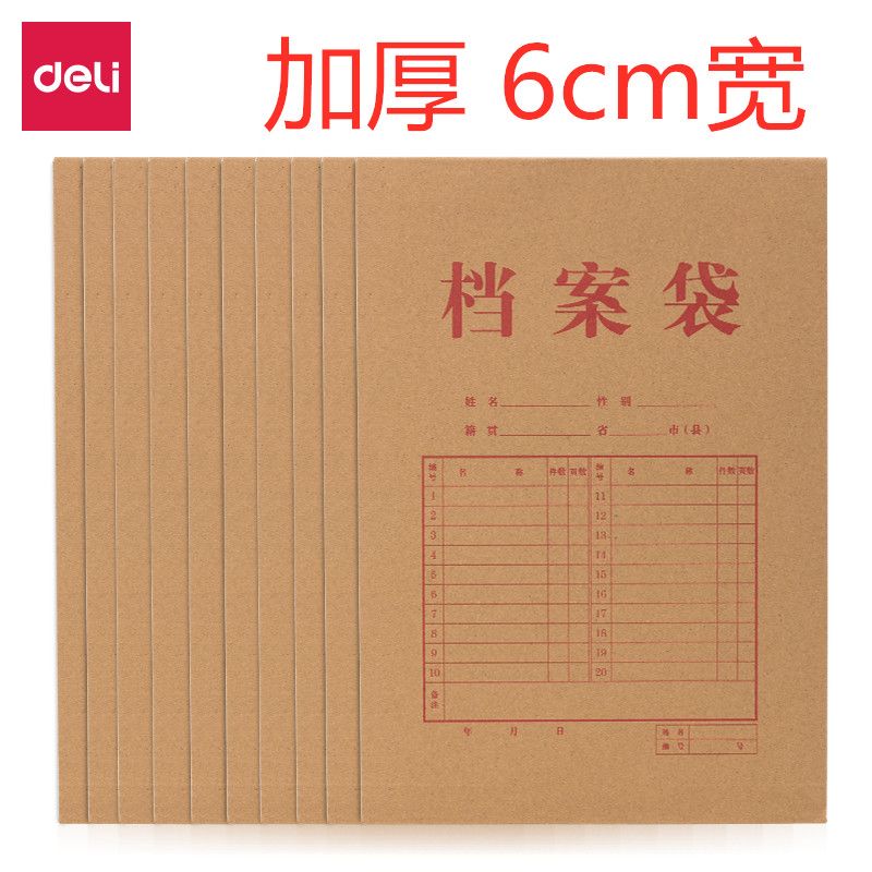 得力牛皮紙檔案袋(200g-6cm)(黃)(10個/包) 文件袋 64101