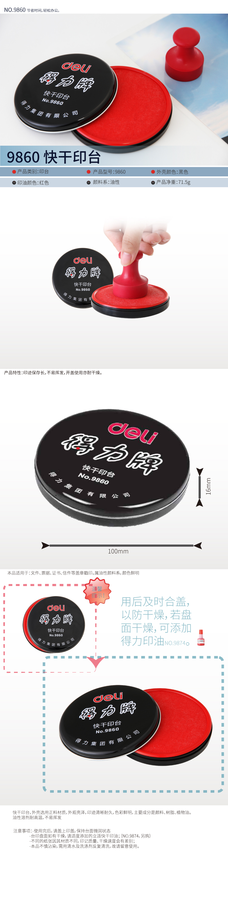 得力9860快干印臺(紅)(只) 印泥 直徑100mm dlxp