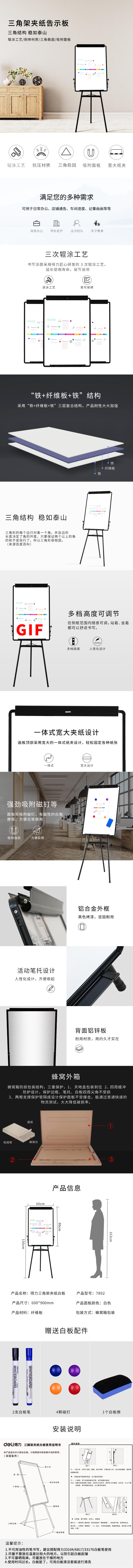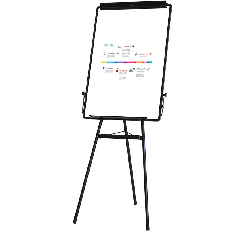 得力7892三腳架白板900*600(黑)(塊) 三角三腳架帶架夾紙磁性白板辦公會議寫字板海報廣告展示架(帶寬紙夾)