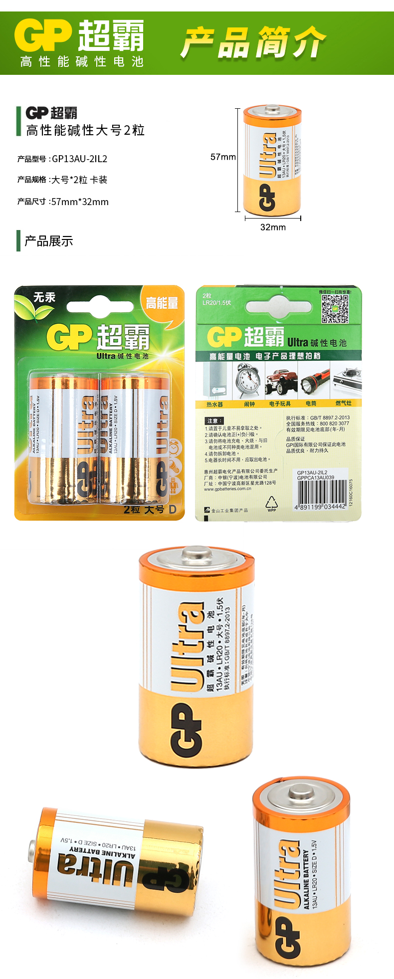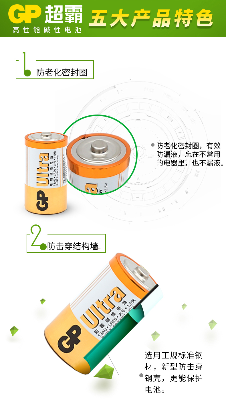 超霸(GP) 1號堿性電池2節裝