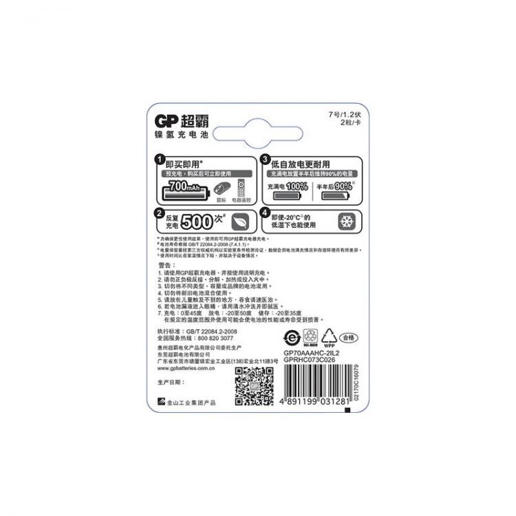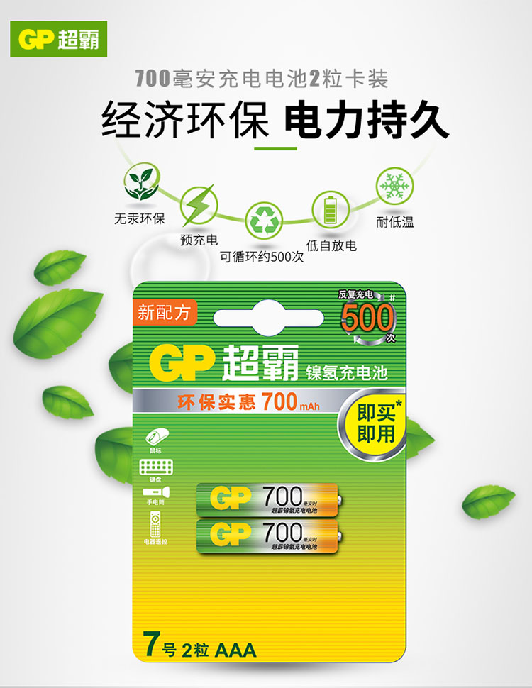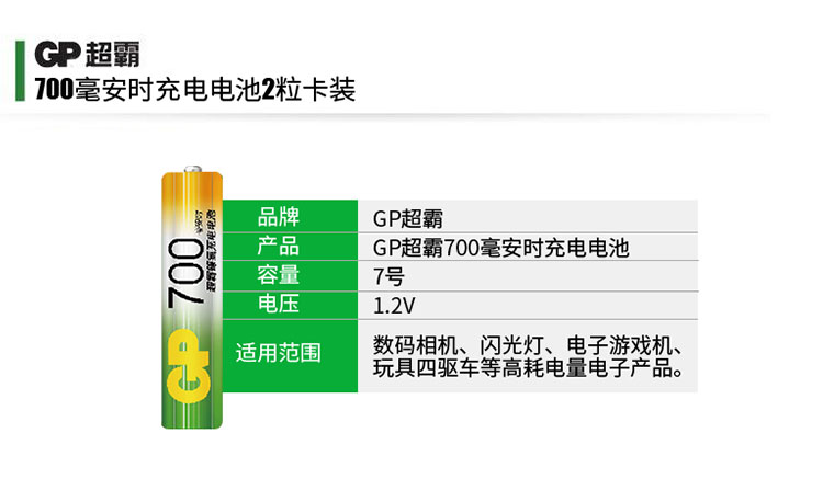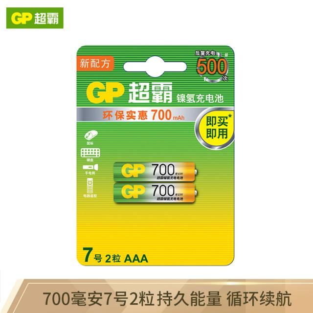 超霸 鎳氫7號(hào)700mAh充電電池2粒裝 適用于遙控器/玩具/體重秤/血壓儀/鼠標(biāo)鍵盤等 七號(hào)AAA
