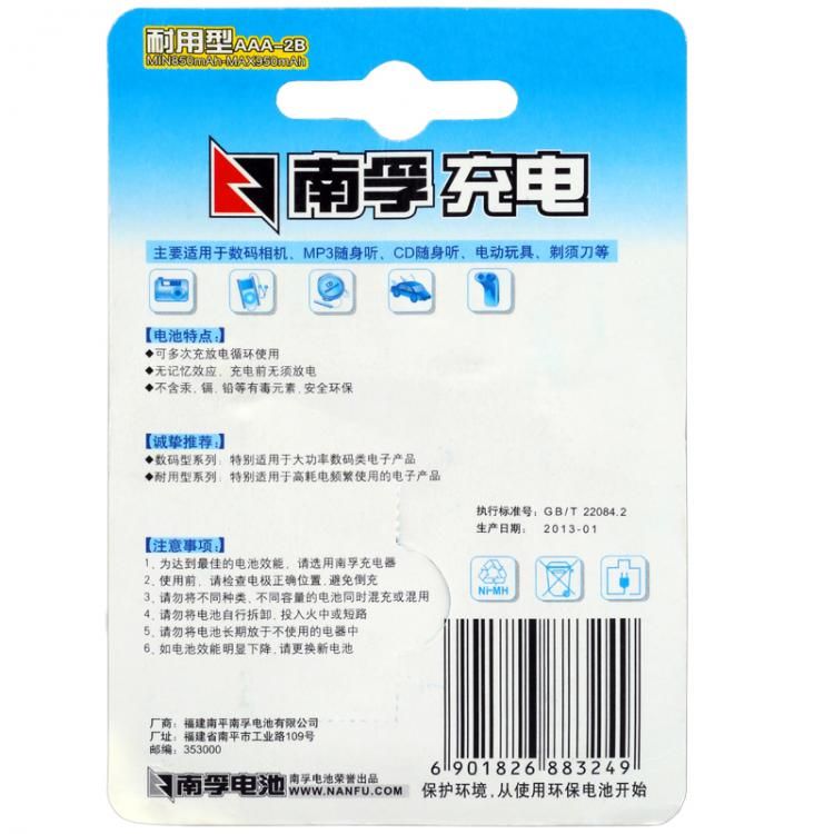 南孚 5號(hào) 7號(hào) 充電電池2粒 鎳氫耐用型1600mAh 適用于玩具車/血壓計(jì)/掛鐘/鼠標(biāo)鍵盤等