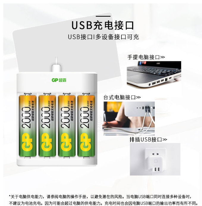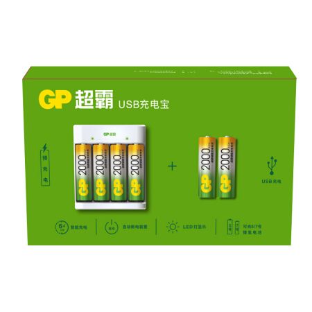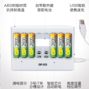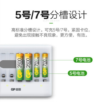 超霸(GP)4槽普充5號(hào)2000mAh充電電池6粒4槽充電器套裝 可充5號(hào)7號(hào) 適用于相機(jī)/玩具/吸奶器等 五號(hào)AA