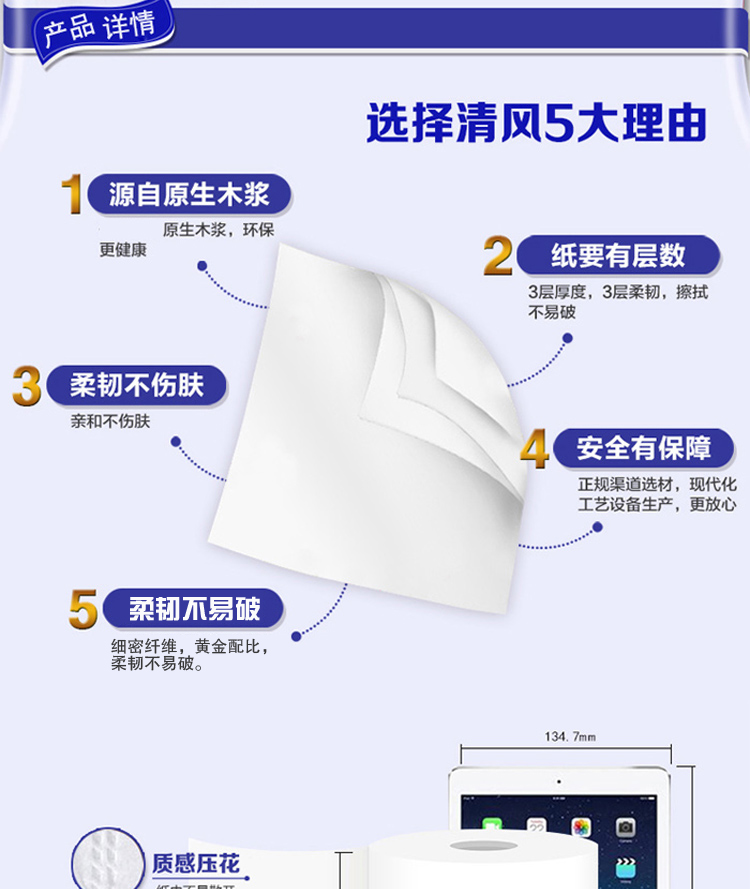 清風 B22AA5三層平紋卷筒衛生紙-275段 卷筒紙 清風卷紙