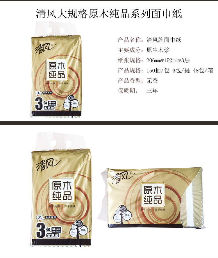 清風(fēng) 純品金裝塑包面紙-150抽 BR36MJ/BR36MJ2 清風(fēng)抽紙 軟抽