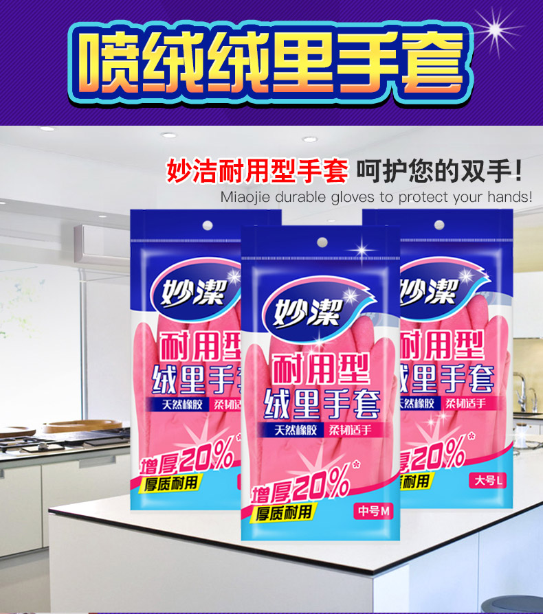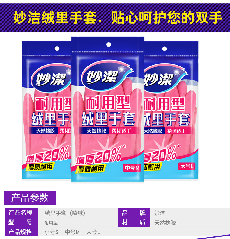 妙潔MGDM-B絨里手套耐用型中號(hào) 妙潔手套 膠手套