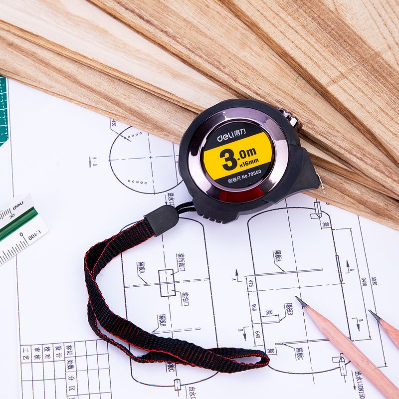 得力79551 79550 79552 79553自鎖鋼卷尺卷尺測量3米5米10米公英制鋼卷尺金屬木工尺