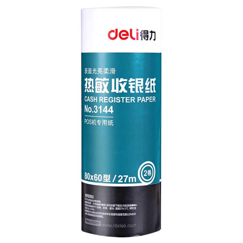 得力3144多瑙河熱敏收銀紙80mm*60mm*27m(白)(2卷/筒)