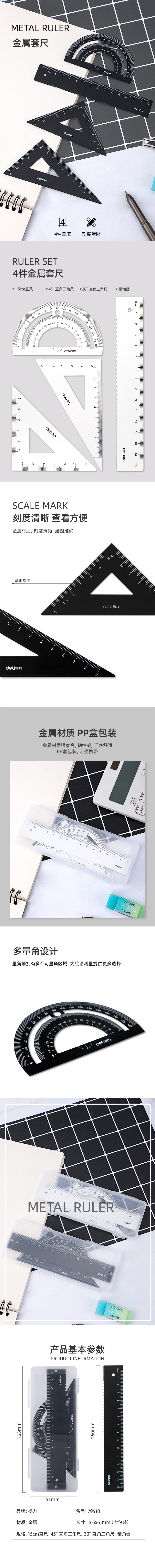 得力79510金屬套尺(混) 三角尺 直尺