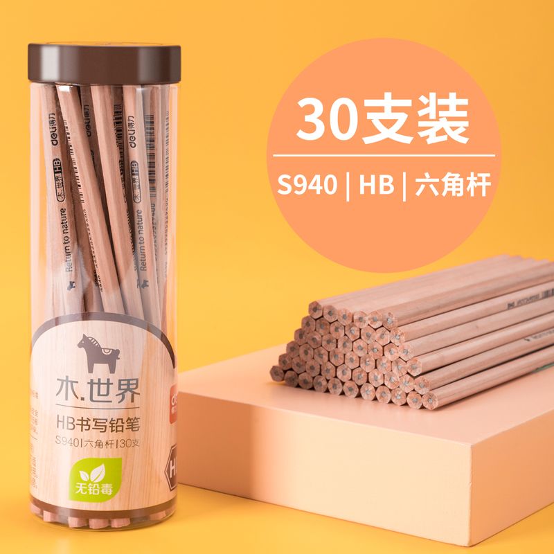 得力S940-HB書(shū)寫(xiě)鉛筆(原木色)(30支/筒)